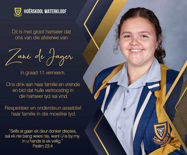 At this difficult time, thoughts and condolences are with Zane de Jager’s family, friends, and the entire Hoërskool Waterkloof community. The school is expected to provide counseling and support services to help students and staff cope with the tragedy.